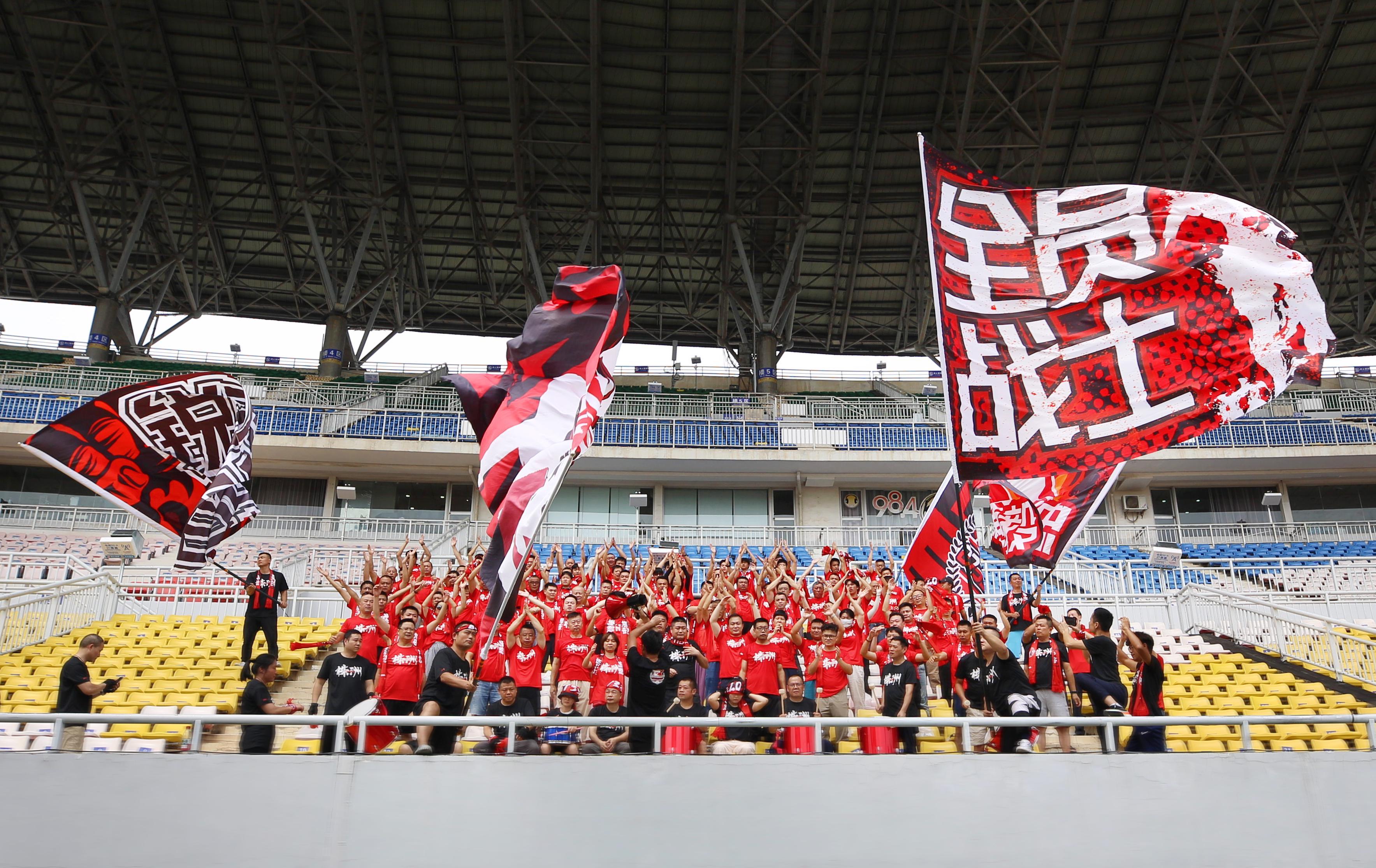 △9月7日“湘超”株洲队球迷在株洲体育中心排练,为株洲队加油助威 图/肖诗纬