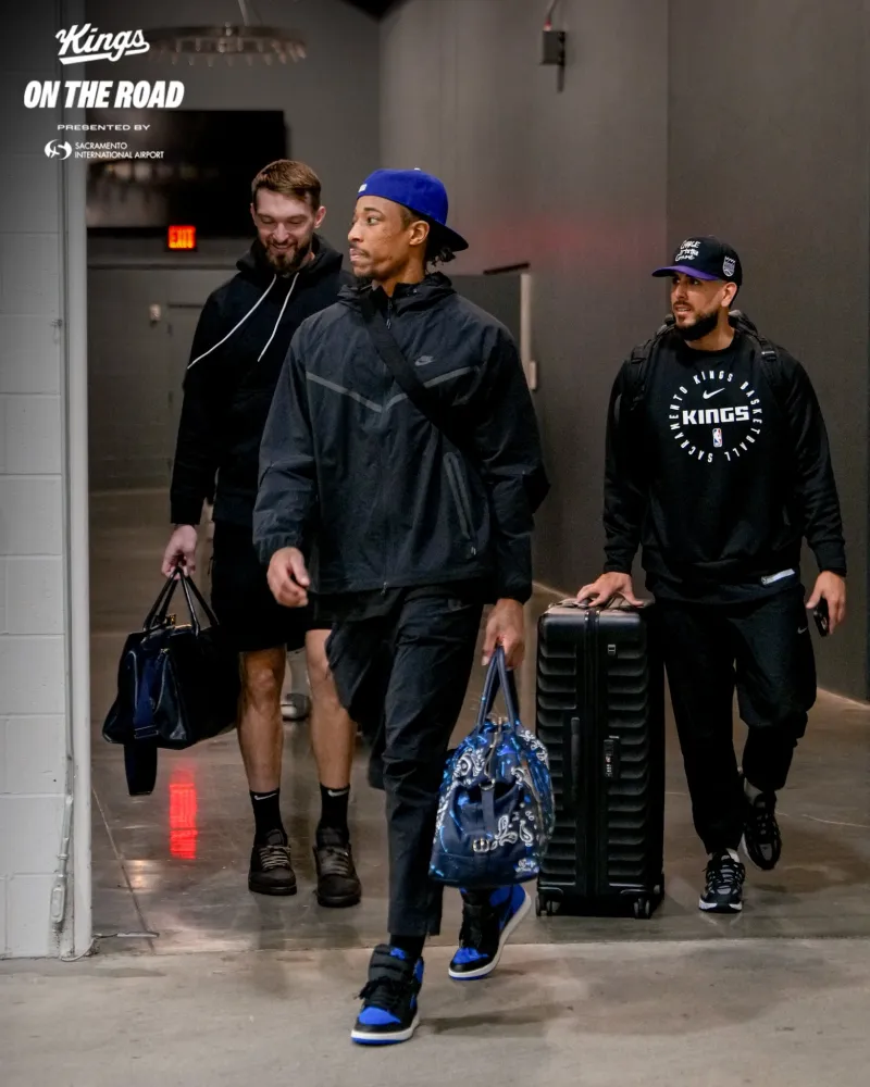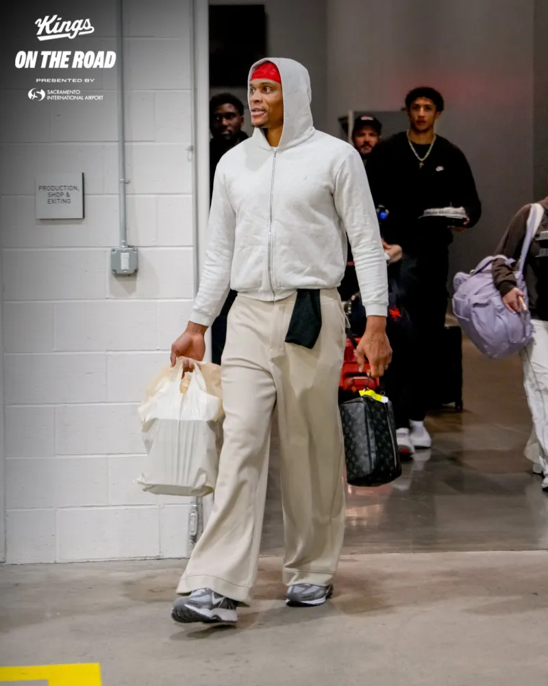 赛前,国王社媒晒出球员们奔赴金州的照片,拉塞尔-威斯布鲁克等球员出镜。